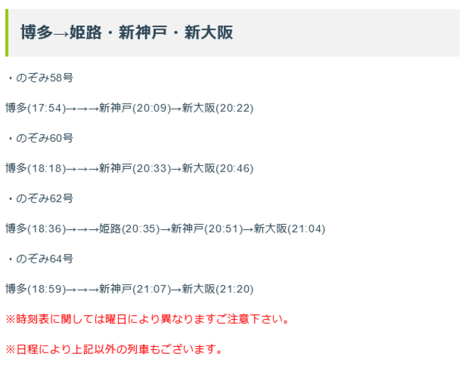 【関西エリア】姫路、西明石、新神戸、新大阪、京都