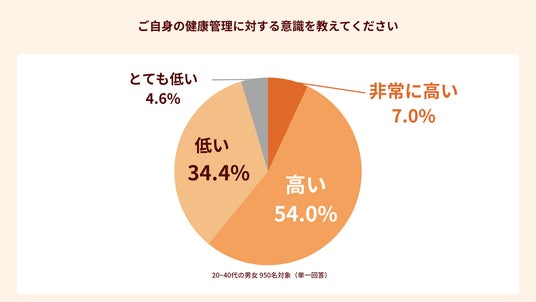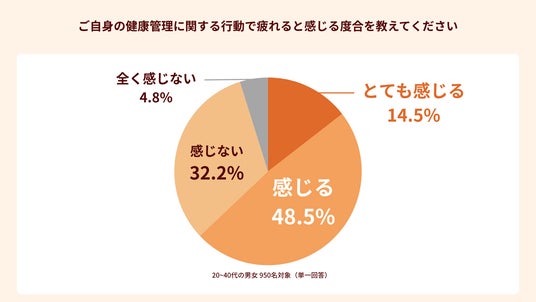 健康管理への意識が「高い(非常に含む)」人は61.0%にのぼる。一方で、健康管理に関する行動に「疲れを感じる(とても含む)」人も63.0%存在している。