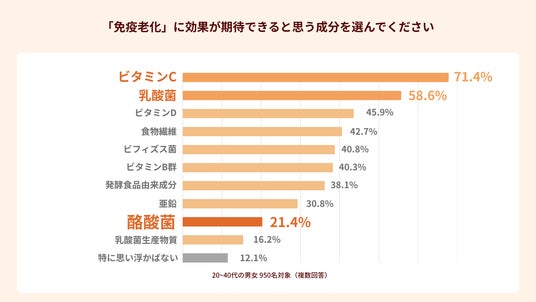 専門家が免疫老化対策の鍵として注目する「酪酸菌」への期待値は、わずか21.4%に留まった。