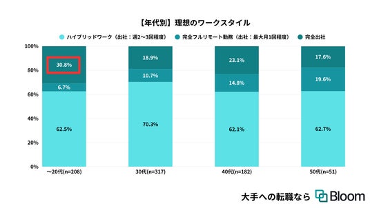 20代の約3割が「完全出社」を理想と回答する結果に