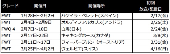・初回放送日は変更となる可能性がございます。詳しくは番組サイトをご確認ください。https://www.jsports.co.jp/ski/fwt/