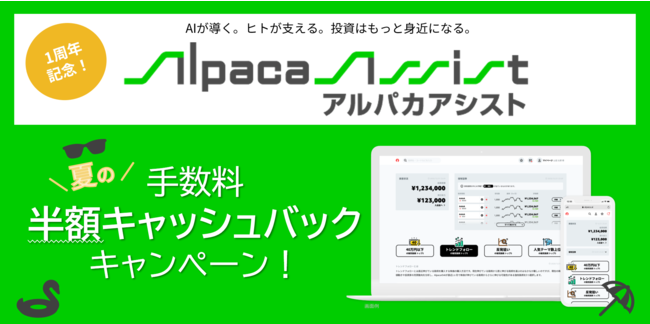保険・証券・住宅ローンと複数の金融商品を横断して1社で取り扱うブロードマインド株式会社(本社:東京都渋谷区 代表取締役社長:伊藤清 証券コード:7343 以下:当社)は、新しい投資サービス「アルパカアシスト」をリリースして1周年を迎えたことを記念し、本日よりお取引頂いた方を対象にキャンペーンを実施いたします。