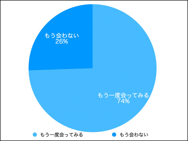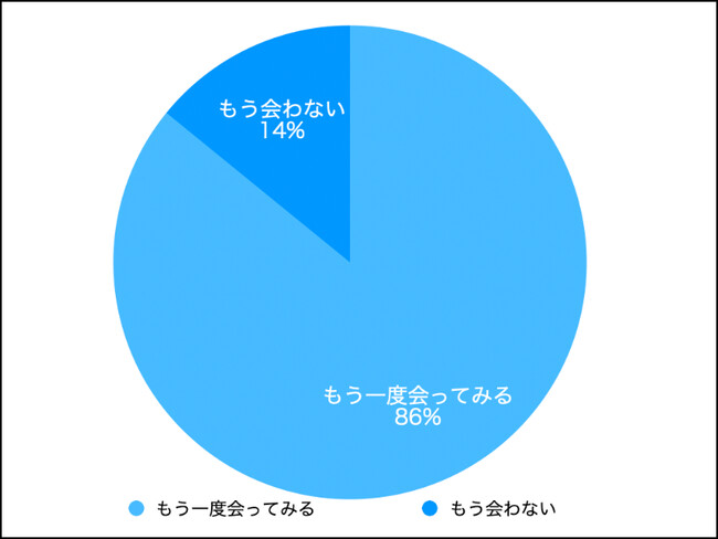 2つのアンケートを見比べると、わずかですが「とても楽しい雰囲気だった」ほうが、もう一度会ってみると回答した人が多くなりました。