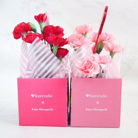 新商品には、ホラグチカヨさんデザインの限定BOX入りカーネーションやソープフラワーなど、カラフルでワクワクするアイテムを販売。店頭販売に先駆けて2025年4月4日(金)より、karendo公式オンラインショップにて先行予約販売を開始します。(karendo公式オンラインショップ: https://karendo.com/)