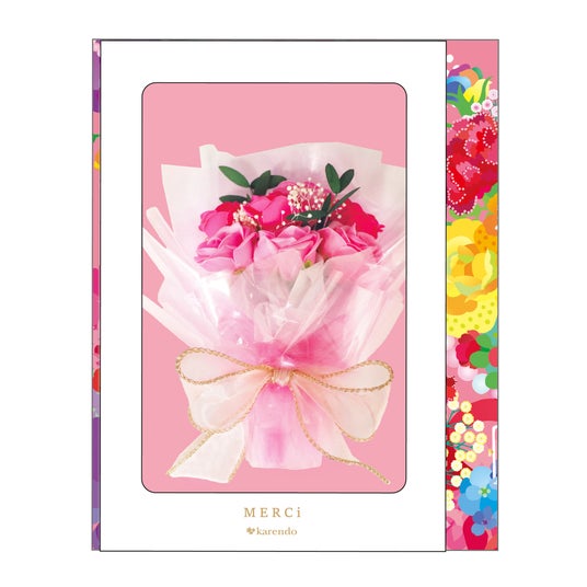 カラフルなデザインが施されたBOXに入ったソープフラワー。お手入れ不要で長く楽しめる人気のソープフラワーは、華やかなピンクをご用意。ギフトに贈りやすい可愛らしいサイズ感と華やかでおしゃれなラッピングが特徴です。お部屋を一気に明るくするソープフラワーのブーケは、BOXのまま飾ることも、ブーケとして飾っていただくこともできます。ほのかな石けんの香りが広がる、人気の母の日ギフトです。