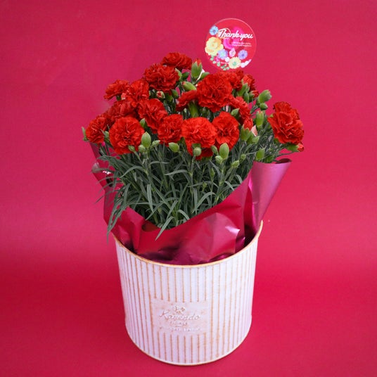 毎年人気のkarendo厳選のカーネーション鉢。今年はアンティーク風のおしゃれなブリキポットとカラフルで華やかなピックがアクセントです。ピックの種類は10種類。お好きなサイズ・ピックを選んで、お母さんに日頃の感謝を伝えてみませんか。お花を育てるのが好きなお母さんにぴったりの母の日おすすめのギフトです。