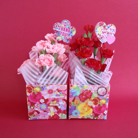 カラフルな限定デザインのBOXに入ったカーネーションポット。毎年母の日に人気のカーネーション鉢ですが、今年はその華やかさに負けないくらい鮮やかなデザインで、お母さんを笑顔にします。プラスワンアイテムとしてもオススメ。カーネーションの花言葉は「感謝」。日頃の感謝の気持ちを、母の日にお花と一緒に伝えてみませんか。