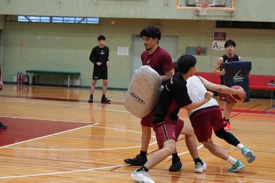 個人スキルのワークアウト、ディフェンスフットワーク、対人練習、4on4・5on5のスクリメージなど徐々に強度が上がっていく練習内容に必死に食らいつき、選手やコーチ・スタッフからもたくさん貴重なアドバイスをもらい、高いレベルの練習を通して日常とは違った貴重な経験をすることができました。