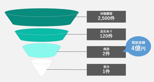 製造業A社では、過去に取引のあった休眠顧客や展示会で集めた名刺など、約2,500件の休眠顧客に対して、アプローチを行い、2件の商談、1件の受注を創出しました。