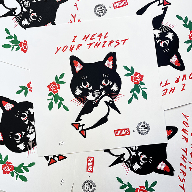 アメリカのサブカルチャーの影響を受けて育まれた、ユーモアがありながら皮肉や風刺といった相反する性質が混在する高木耕一郎の作品と、アウトドアの世界で親しまれるCHUMSのマスコットキャラ「ブービーバード」という2つの個性が組み合わさることで生まれる唯一無二の世界観をお楽しみください。