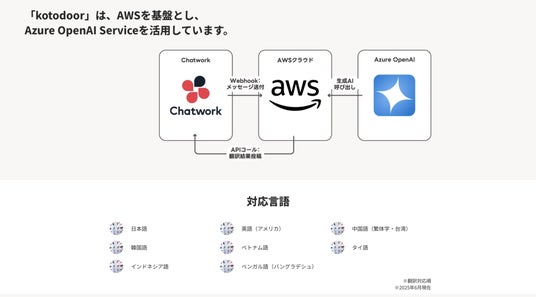 株式会社キャップドゥー・ジャパン(本社:熊本市)は、Chatworkでの多言語コミュニケーションを支援するAI翻訳Bot「kotodoor(コトドア)」を2025年6月より提供を開始いたします。