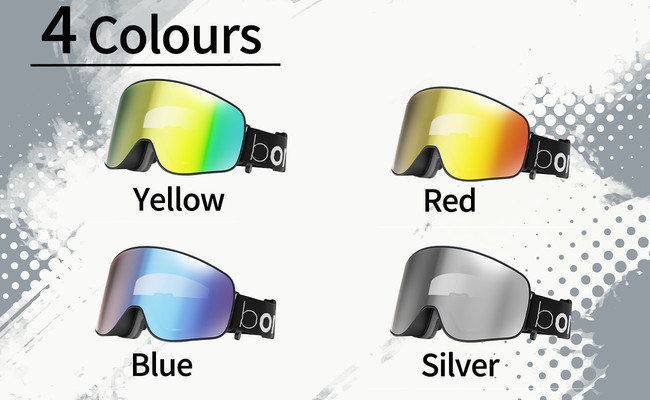また、レンズによる視界色の調整は、眼精疲労も軽減してくれるので、より快適にスキー・スノーボードを楽しめるようになります。4カラーからお好きな色をお選びいただけます。