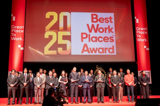 2025年2月12日(水)に品川インターシティホールにて開催されたGPTWが主催する表彰式「Best Workplaces Award 2025」にて壇上に上がり、表彰を受けております。