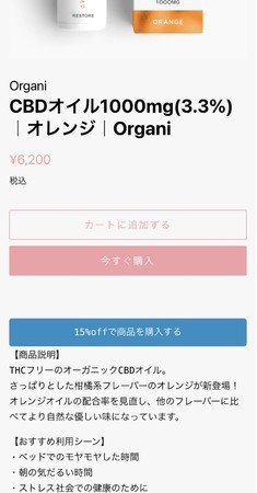 オンラインストアの商品ページにて、「15%offで商品を購入する」をタップいただくと、メンバーの方は15%オフにてご購入いただけます。