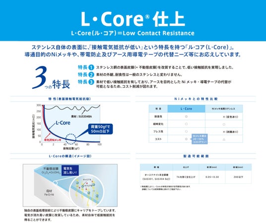 1. ステンレス鋼でありながら低接触抵抗を実現したL・Core仕上