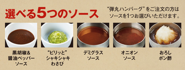 ソースは5種類からお選び頂くことができ、特に新ソース”黒胡椒&醤油ペッパーソース”で召し上がると相性抜群で食欲が進みます。