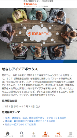 関市(岐阜県・関市、市長:尾関 健治、以下「関市」)と株式会社自動処理(東京都中央区、代表取締役:高木 祐介)と株式会社インフォファーム(岐阜県岐阜市、代表取締役:辻 博文)は、12月1日より対話型政策検討プラットフォーム『アイデアボックス2.0』を用いて、市民意見の募集を開始します。