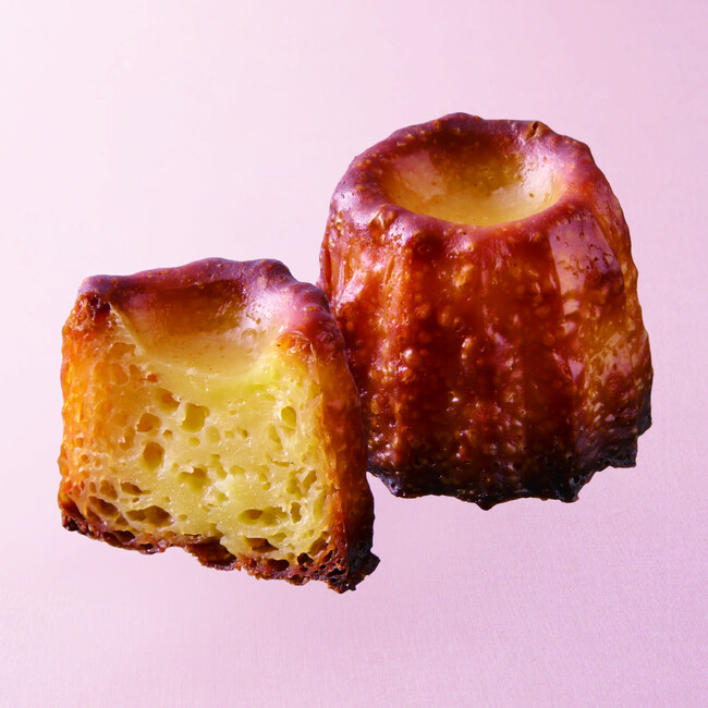 フランスのボルドー地方が発祥といわれる「カヌレ」。小麦粉や卵黄、牛乳を使用して溝のついた専用型を使い焼かれることが特徴で、コロンとした形が印象的です。もりもとの新ブランド「ポヌレ」のカヌレはプレーンからピスタチオまで全7種類ご用意しており、サイズは小さくても、北海道産の小麦や牛乳、バター、砂糖などを使用し、カヌレならではの食感「外はカリッと、中はもっちり」となるよう、緻密な温度調整と技術で焼き上げています。ラム酒が香る上品な味わいに加え、ミルクの濃厚さや卵の風味も感じられる厳選した7種類です。