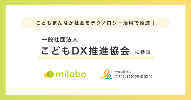 自治体向けサービスを開発する株式会社ミラボ(本社:東京都千代田区、代表取締役:谷川一也、以下「ミラボ」)は、代表取締役谷川一也が「一般社団法人こどもDX推進協会」の理事就任および参画しましたことをお知らせいたします。また、2023年3月20日(月)に「一般社団法人こどもDX推進協会の設立総会」および「こどもDXシンポジウム」を開催いたします。