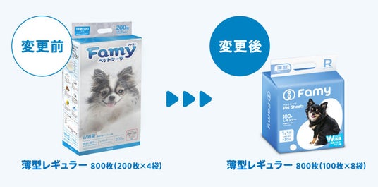 フォルダ株式会社(本社:東京都渋谷区、代表取締役社長:久保山直貴)が展開するペット総合ブランド「Famy(ファミー)」は、累計販売枚数3億枚を突破した「ペットシーツ」についてデザインの全面リニューアルを実施しました。