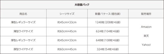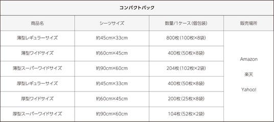 薄型・厚型の両タイプに、それぞれ「大容量パック」と「コンパクトパック」を新たにご用意しています。