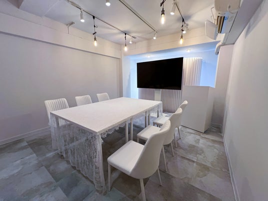 ウェイティングルームから物語の部屋は見えず、心のスイッチを切り替える時間を設計。ホワイトとグレーを基調とした空間が、日常から離れた物語の世界へ誘います。