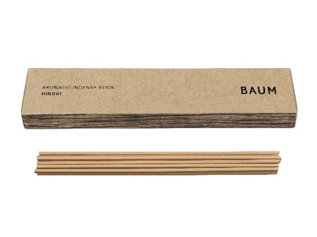 BAUM商品を10,000円(税抜)以上お買い上げのお客様には購入特典として「BAUMオリジナル インセンススティック HINOKI」を差し上げます。リニューアルしたスキンケアの香りをベースに120年以上続く老舗「薫寿堂」とコラボレーションしたふくよかなヒノキの香りをお楽しみください。