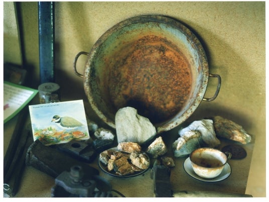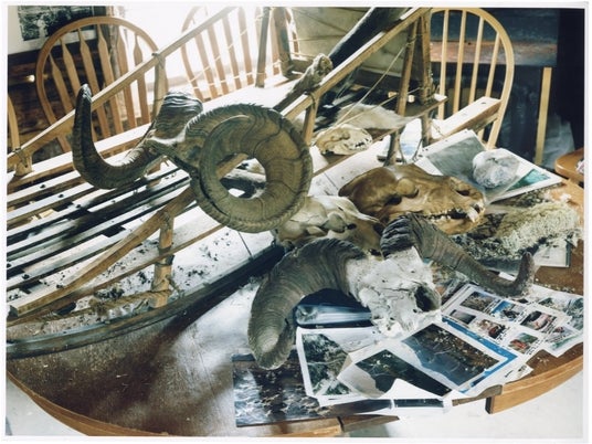 廃墟となった建物の内部に遺された動物の骨や当時の絵葉書など当時の生活に関わるさまざまなものによって構成された「タブロー写真」。そして、写真家E.A.Heggがアラスカのゴールドラッシュを記録した写真の「複写イメージ」です。一般的に物語は「描写」と「叙述」によって語られるものです。「ランドスケープ写真」と「タブロー写真」は異なる形でゴールドラッシュを「描写」します。
