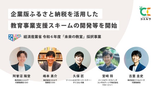 教育事業を起点として「どこからでも、“こえる”社会をつくる」をミッションに掲げる株式会社コエルワ(本社:北海道札幌市、代表取締役:阿曽沼 陽登)は、経済産業省「令和6年度学びと社会の在り方改革推進事業」(「未来の教室」実証事業)に採択されましたことをお知らせいたします。弊社では、多様なステークホルダーと共に『企業版ふるさと納税を活用した、小規模自治体の教育事業支援スキームの開発・普及活動』を行ってまいります。