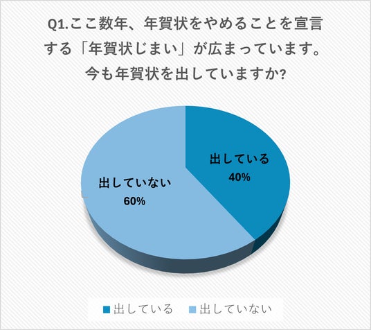 「ここ数年、年賀状をやめることを宣言する「年賀状じまい」が広まっています。今も年賀状を出していますか?」の質問に対して、「出している(40%)」「出していない(60%)」という回答になりました。