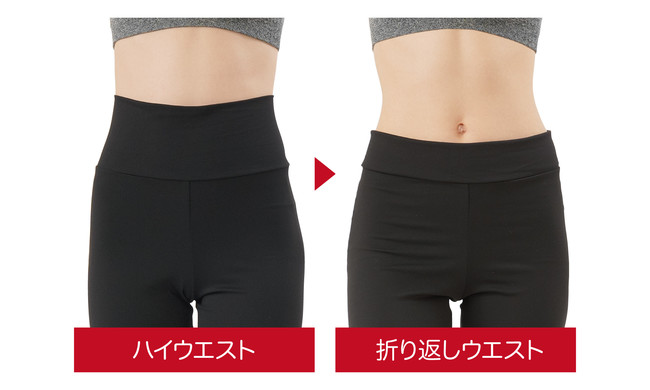 伸ばしてハイウエスト・折り返して骨盤引き締めの2WAY仕様!シーンや服装に合わせて着用いただけます。