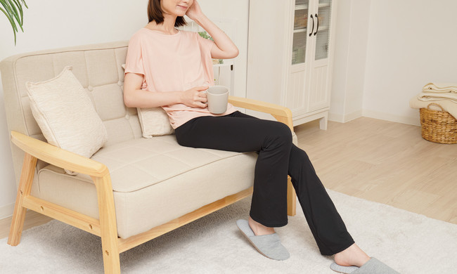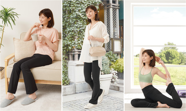 おうちでのリラックスタイムやヨガなどの運動時、ワンマイルウェアにもぴったりな、くつろぎストレッチパンツです。