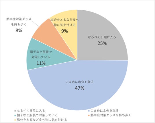 その他の意見としては、「なるべく日陰に入る(25%)」や「帽子など服装で対策している」といった声も挙がった。