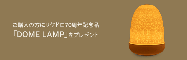 リヤドロでは、リヤドロ銀座サテライトブティック、およびオンラインショップで税込440,000円以上をご購入の方に、リヤドロ創業70周年を記念したオリジナル「Dome Lamp」を差し上げています。