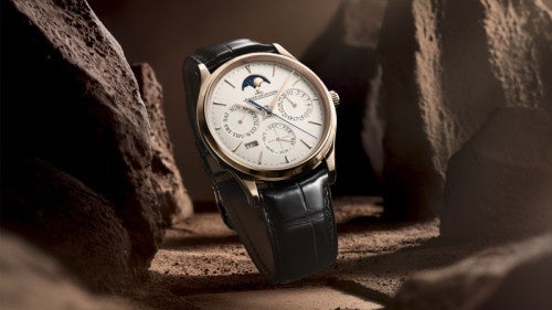 ケースのサイズはオリジナルのマスター・ウルトラスリム・パーペチュアルカレンダーと同じ直径 39mm、厚さ 9.2mm を保ちながら、リニューアルされたプロポーションとよりスリムで細長くなったラグによって、あらゆるサイズの手首にさらにフィットし、さりげなく現代的にアレンジされたデザインになっています。