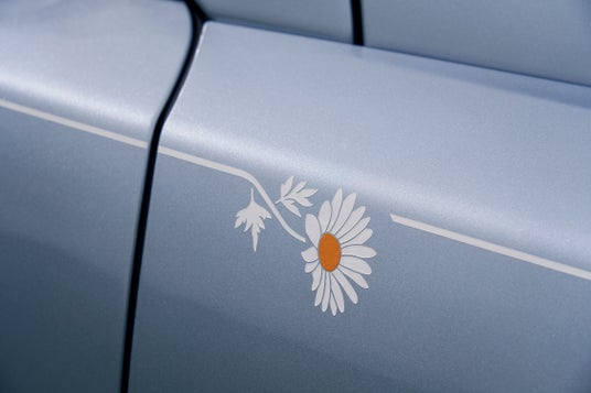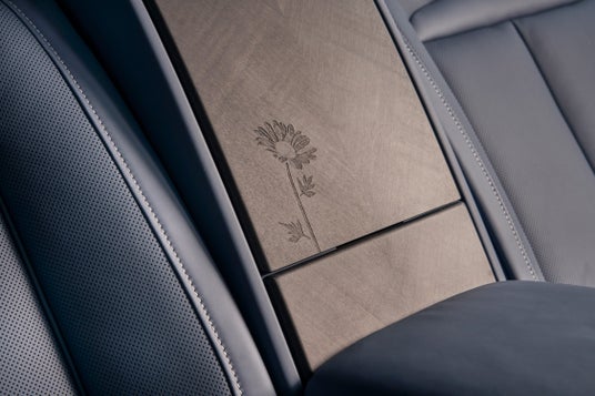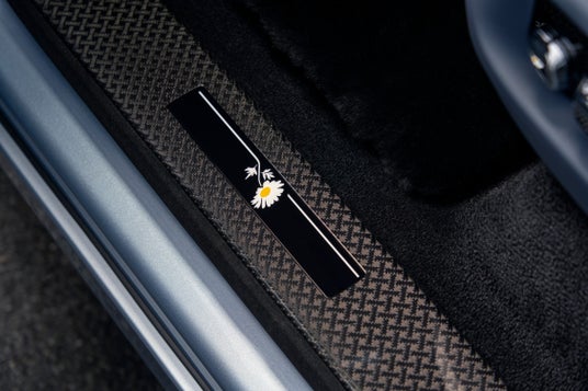 デイジーの花はコーチラインのモチーフとしてあしらわれ、パウダーブルーのエクステリアに描かれた一本のコーチラインと美しく調和するように、細部まで丁寧に手作業で描かれています。その繊細な色使いは、ブラック・バッジ特有のダークトーンのパンテオン・グリル、スピリット・オブ・エクスタシー、エクステリアのブライトワークとの印象的なコントラストを生み出します。