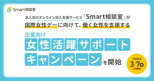 株式会社Smart相談室(本社:東京都港区、代表取締役・CEO:藤田 康男)が運営する、法人向けオンライン対人支援サービス「Smart相談室(スマートそうだんしつ)」は、3月8日(金)の国際女性デーに合わせて、働く女性を支援する企業向けに「女性活躍サポートキャンペーン」を開始します。