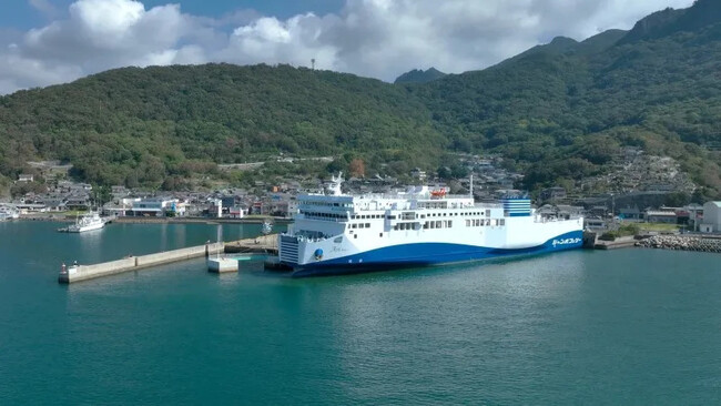 「あおい」は、ジャンボフェリーの32年ぶりの新船として、2022年5月22日に進水、10月22日に就航しました。船体を約1.4倍に大型化し、輸送力の強化、安全性と省エネ性の向上を実現しています。