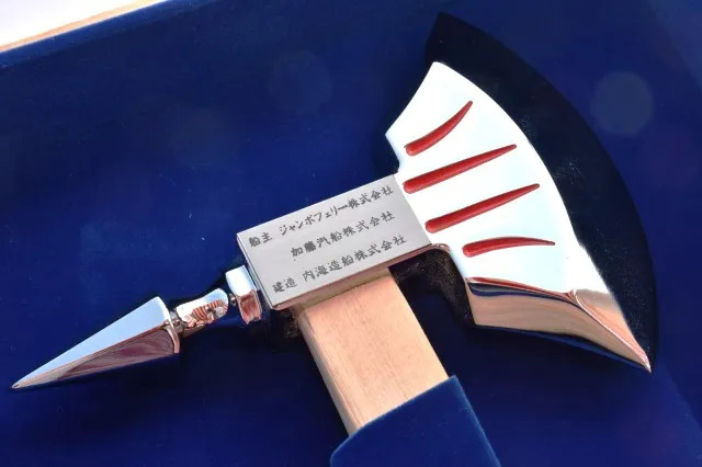22年5月28日に行われた進水式において、実際に「支網切断」で使われた斧(※)や木台などを、あおい船内に特別展示します。