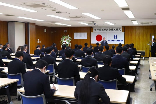 古野電気株式会社(本社:兵庫県西宮市、代表取締役社長執行役員:古野幸男、以下 当社)は、2025年4月1日(火)に新入社員40名を迎え、2025年度の入社式を行いましたのでお知らせします。式典終了後は約2か月間の集合教育を行い、その後各部門へ配属となります。