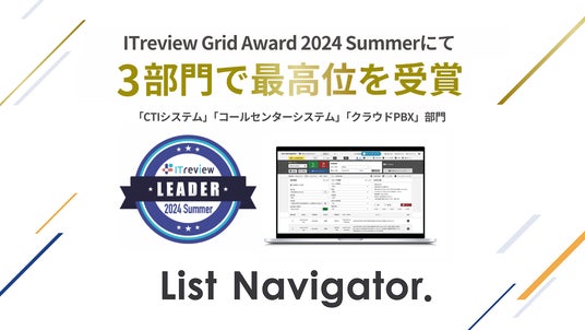 株式会社Scene Live(本社:大阪府大阪市、代表取締役:磯村 亮典 以下、Scene Live)が開発・提供するアウトバウンドコールシステム『List Navigator.』が、「ITreview Grid Award 2024 Summer」にて、CTIシステム部門・コールセンターシステム部門・クラウドPBX部門の3部門で最高位の「Leader」を受賞したことをお知らせいたします。