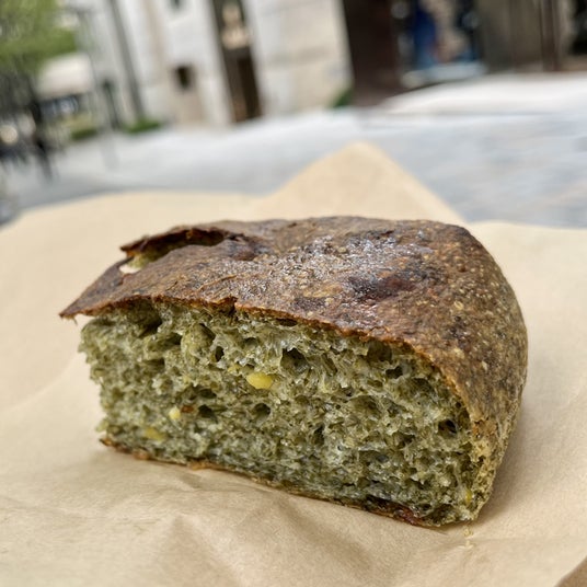 486円(税込)※店頭のみbricolage bread & co.「青のりフォカッチャ」 東京都港区にあるパンの名店「bricolage bread & co.」の青のりフォカッチャは、北海道産小麦「ゆめちから」100%の生地に、じゃがいもが練り込まれモッチモチしっとりした食感です。焼き上がりには、青のりと合う醤油を塗って仕上げられています。