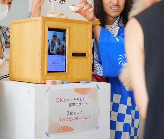 韓国で大人気のセルフ写真撮影機にて、愛犬と一緒に撮影できるスペースを設け、多くの飼い主さまとわんちゃんに記念の一枚を飾っていただきました。