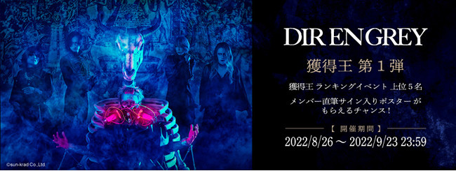 期間中のDIR EN GREYコラボグッズを最も多く獲得してくれたランキング上位5名様には、「メンバー直筆サイン入りポスター」をプレゼントいたします。