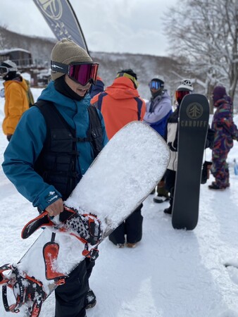 アメリカ発のスプリットボードをデザインベースに持つCARDIFF SNOWCRAFTは「FOOT PRINT」と題して全国を周り、スノーボードはもちろんスプリットボードも試せる試乗会を開催しています。試乗会の参加人数は過去最高を更新し、スプリットボードの買い替えを検討しているコアユーザーから、初めてスプリットボードを滑るエントリーユーザーまで多くの方に楽しく体験いただいております。
