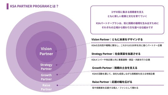 KSAは「挑戦の循環をつくり、新しい産業と文化を生み出す」というミッションのもと、挑戦者が集まり育つ環境を形成してきました。今後は、企業・団体が持つ外部資源を取り込むことで、挑戦の成長と社会実装を促すフェーズに移行します。