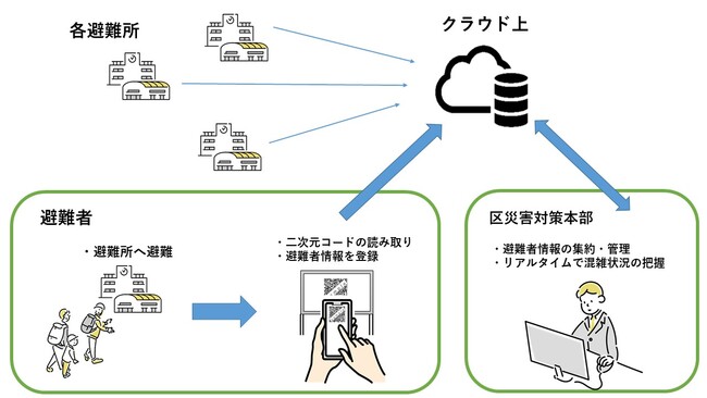 また、区災害対策本部においても、アナログ主体の受付では、避難者情報の集約・管理に係る過大な作業負荷、リアルタイムでの各避難所の受入状況の把握が困難という課題もあります。