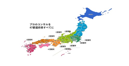 全国拠点数21拠点(東京、神奈川、愛知、大阪、神戸、福岡など)