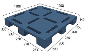 - 豊富なサイズ・カラー展開標準品は1100 mm×1200 mm×H140 mm(自重21 kg)で、カラーは黒・緑・ベージュの3色展開。他にも1100 mm×1100 mm×H140 mm(静荷重2 トン)のバリエーションを用意し、物流システムに合わせて選択できます。