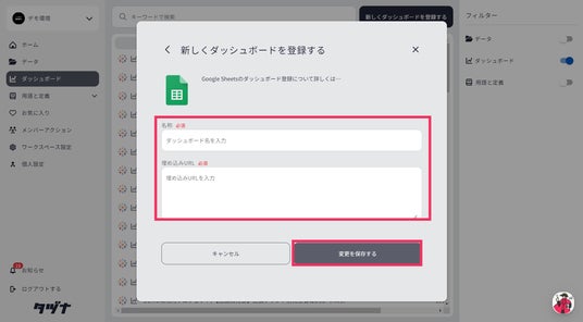 登録したいスプレッドシートの名称やURLを入力し、変更を保存するをクリックすれば完了です。
